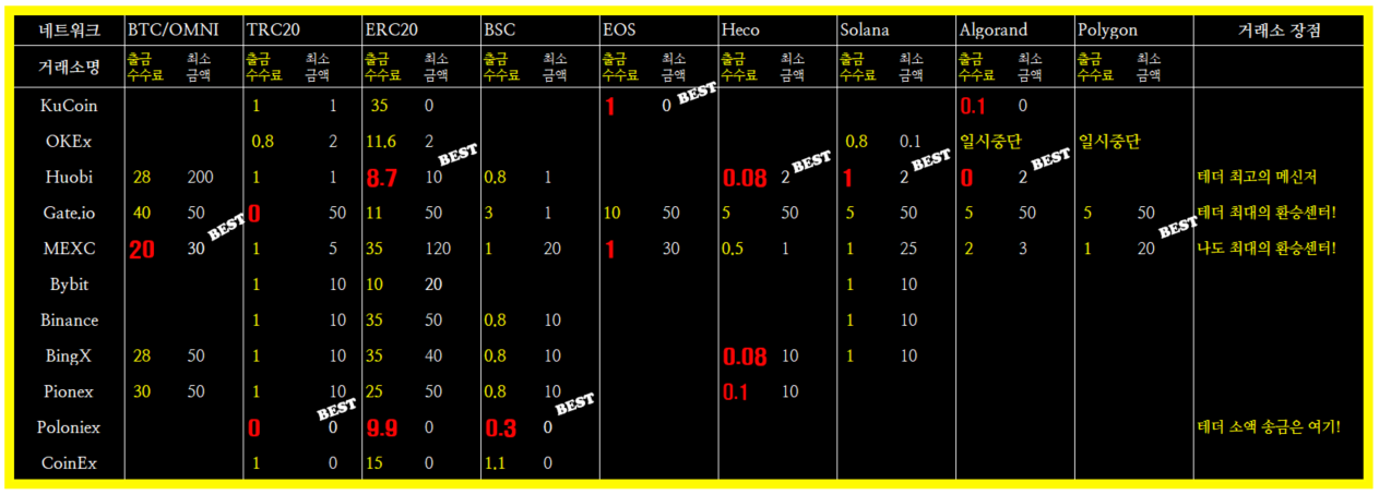 OKEx에 있는 50 USDT를 Gate.io로 보낼 때 가장 수수료가 적게 드는 방법은?